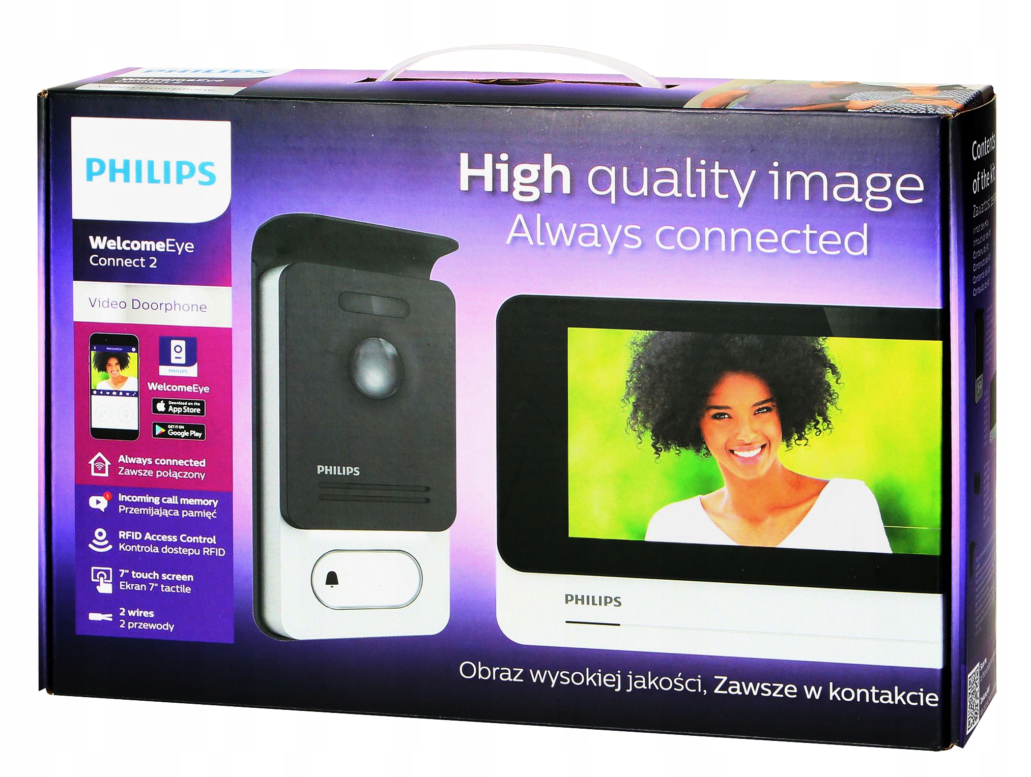 Philips WelcomeEye Connect 2 включает в себя монитор с 7-дюймовым сенсорным экраном и встроенный модуль WiFi, включить удаленное управление устройством через приложение Philips WelcomeEye на смартфоне.