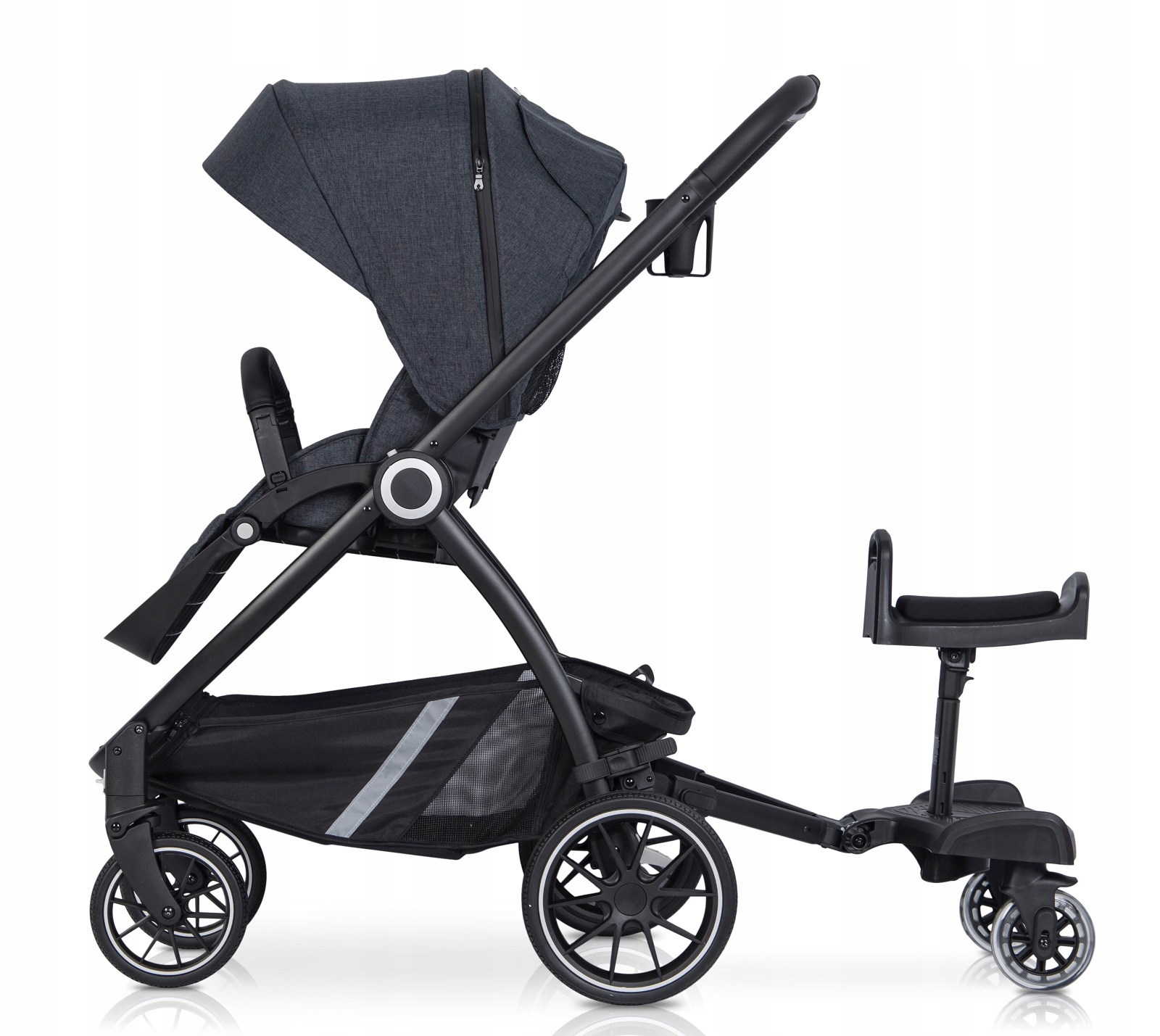 удлинитель может быть установлен на большинство колясок, доступных на рынке, благодаря универсальной системе крепления.