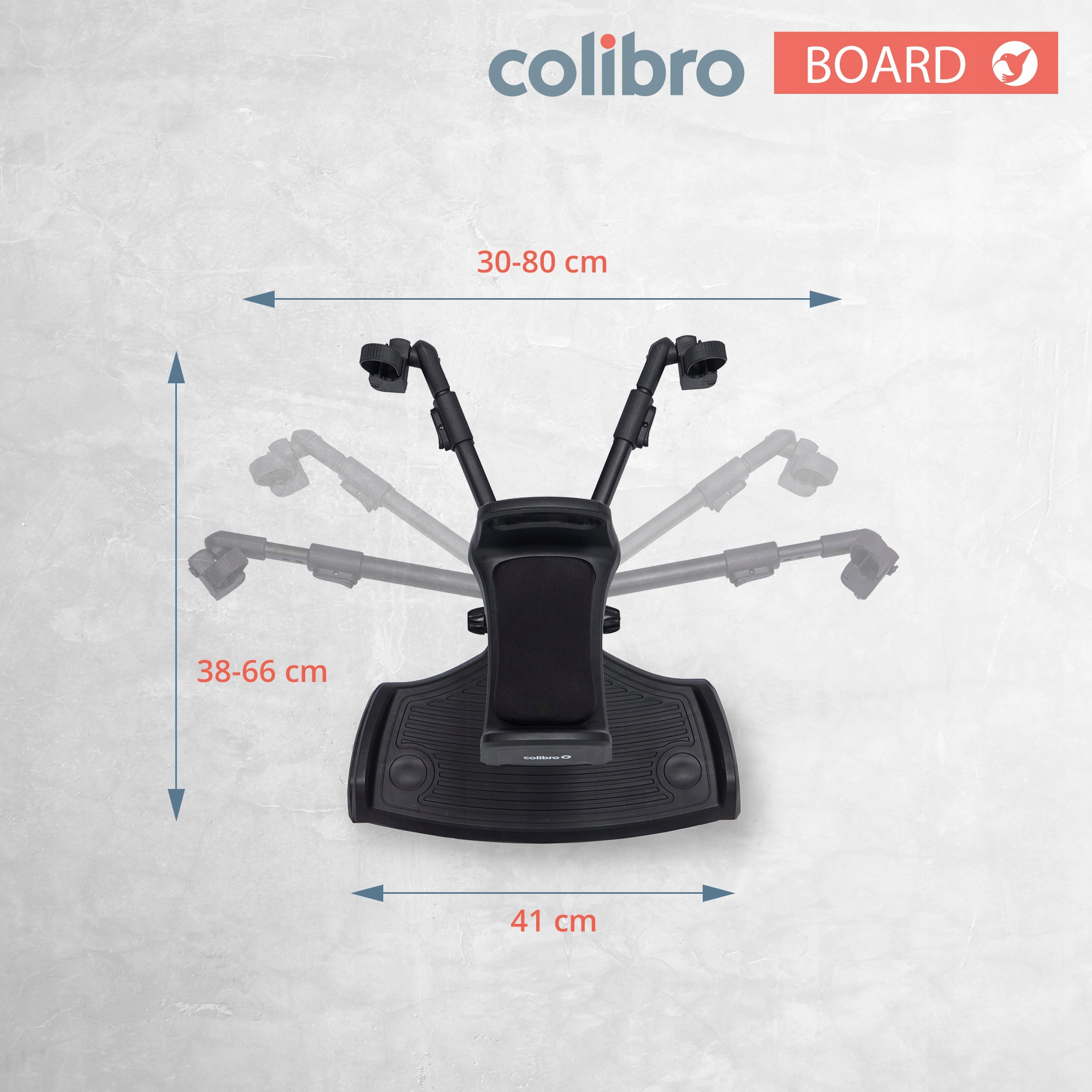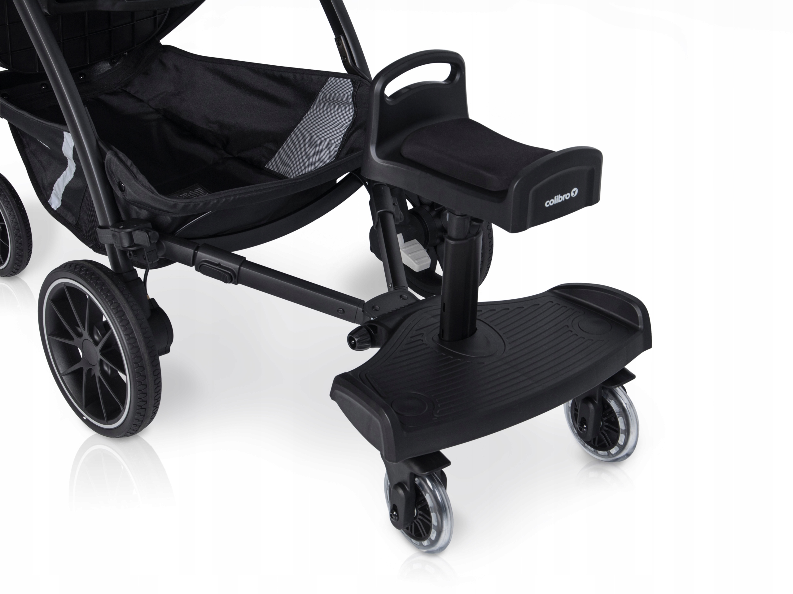 Благодаря этому вы сможете с комфортом перевозить своего подросшего ребенка, который больше не пользуется коляской. Удлинитель Colibro можно использовать как просто платформу для стоящего ребенка или как платформу с сиденьем, позволяющим перевозить ребенка в сидячем положении.