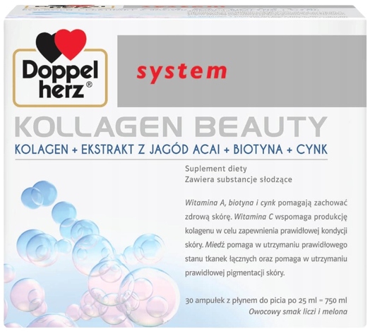 С возрастом кожа становится тоньше и менее упругой. Это вызвано, среди прочего, уменьшением количества коллагена в коже и потерей эластичности. Не позволяйте своей коже терять естественную красоту и заботьтесь о ее здоровом виде. Система Doppelherz KOLLAGEN BEAUTY создана для активных женщин. Богатая формула продукта с фруктовым вкусом личи и дыни заключена в удобные отдельные ампулы, готовые к немедленному употреблению (без необходимости разбавления другими жидкостями).