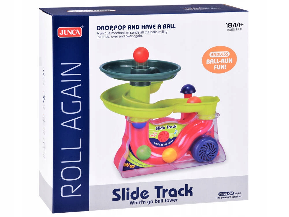 В начале вам нужно удалить игрушечную батарею и зарядить ее, затем нажмите красный и темно -синий дымоход и запустите! За одну секунду начнется веселая музыка и воздушные удары, которые будут отвечать за толкание шаров.