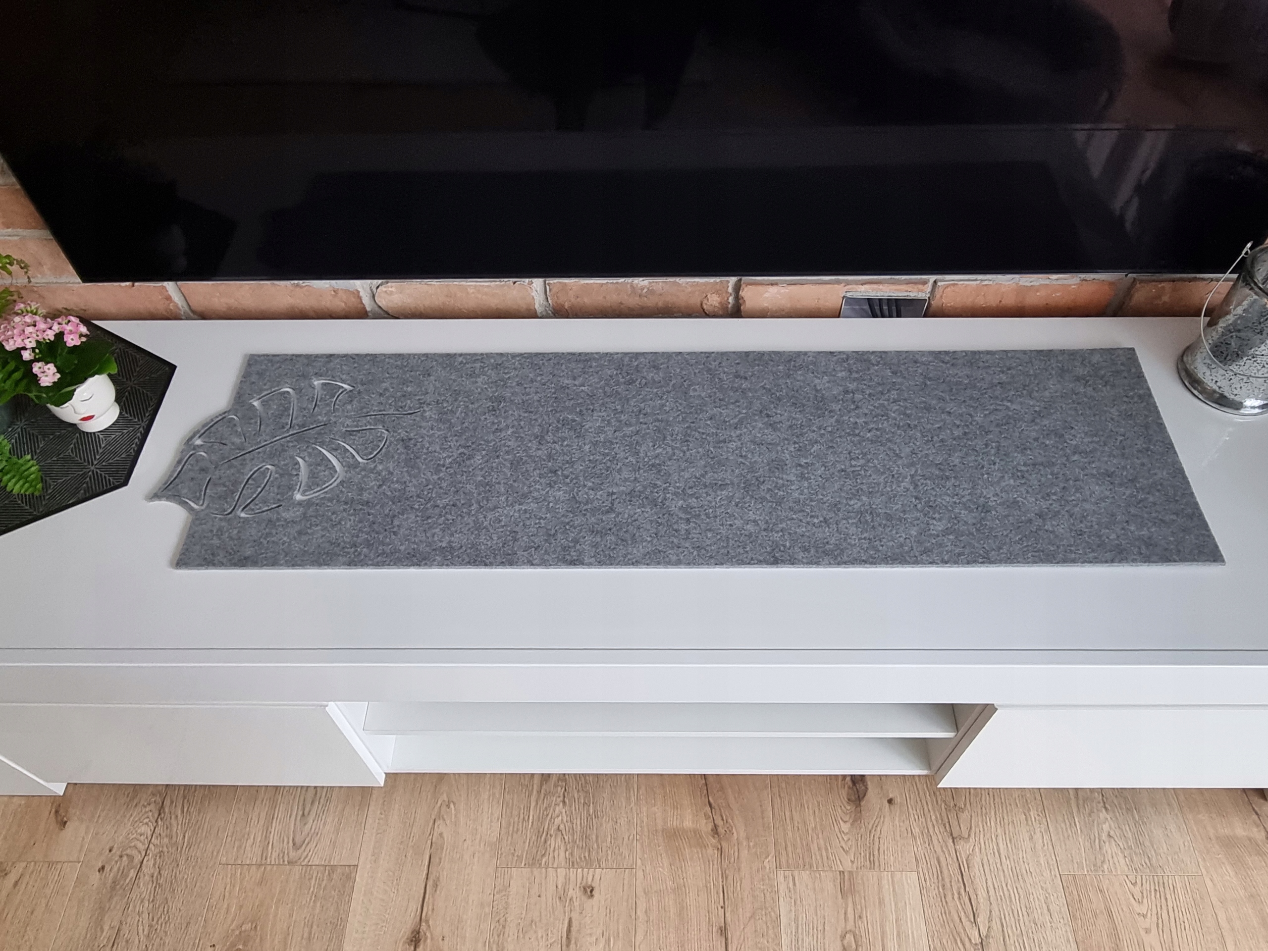 Доріжка для столу з сірого фетру, лист, можна прати, 100x30 см