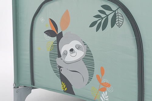 Простая дорожная кроватка и манеж в одном корпусе, закрывающийся на молнию, через который ребенок может свободно встать с кровати или зайти внутрь, как только это позволят навыки ребенка.