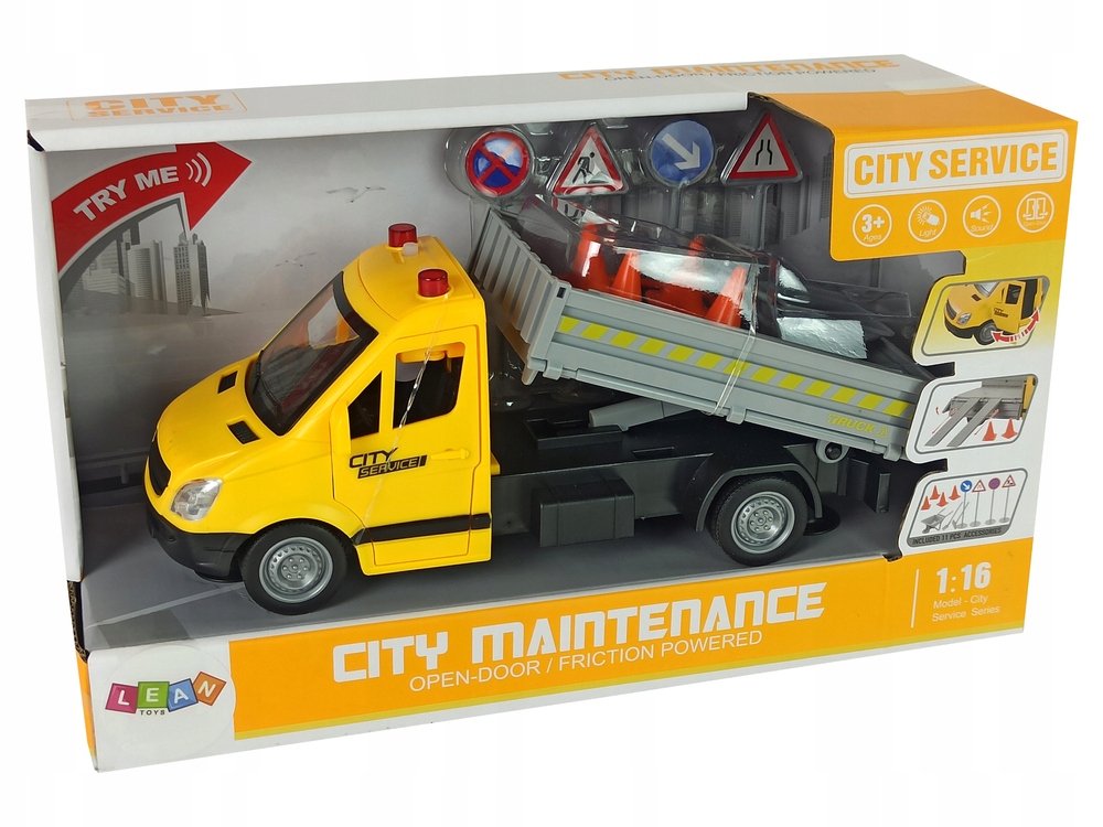 - Строительная машина дорожных служб с фрикционным приводом 1:16 Свет Звук Звук Дорожные знаки