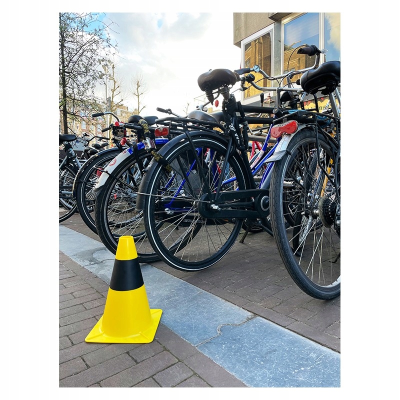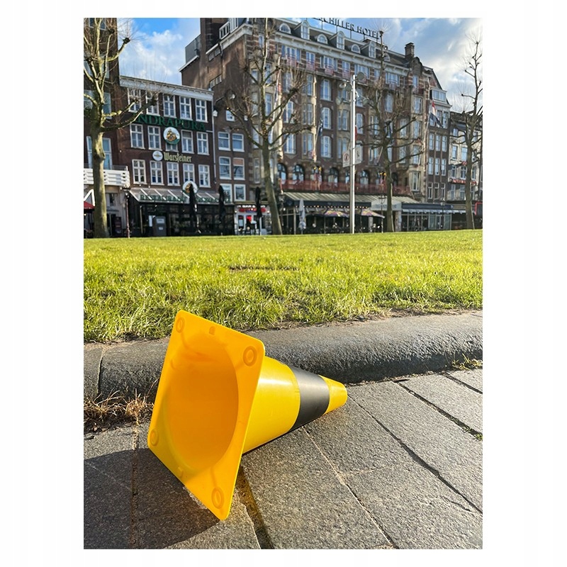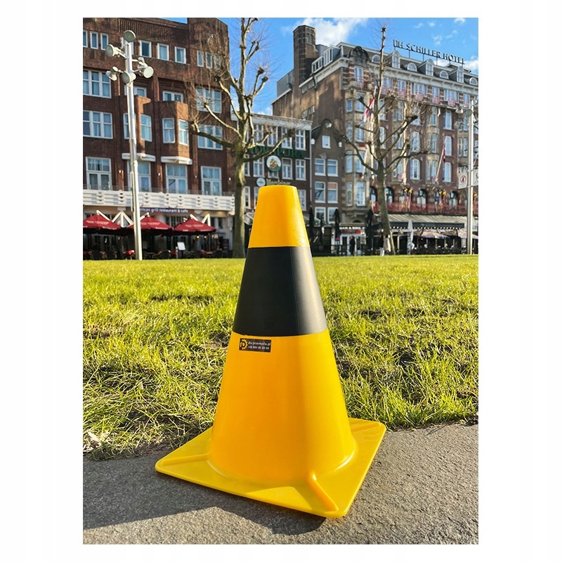 Дорожный конус из полиэтилена контрастного цвета. Материал устойчив к сложным погодным условиям и УФ-излучению.