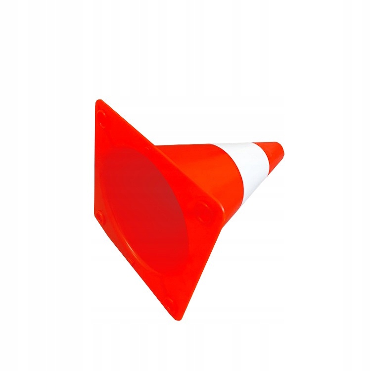 Дорожный конус из прочного флуоресцентного материала. Его легкая конструкция позволяет легко транспортировать и использовать его в различных местах. Гибкая конструкция не вызывает повреждений при ударе о красно-белый конус.