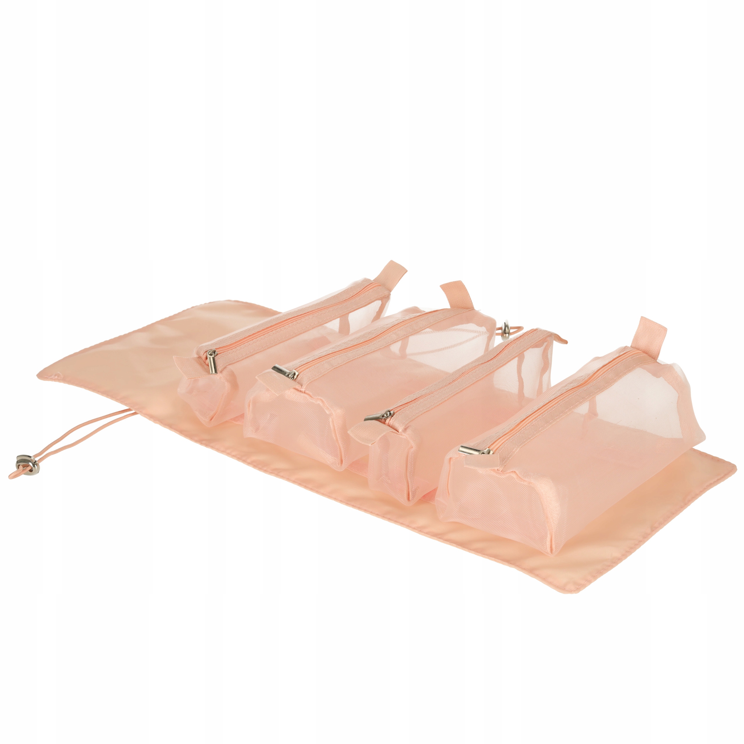 Складная косметичка идеально подойдет для вашей следующей поездки! Он имеет четыре кармана (два маленьких и два больших), в которые можно положить любимую косметику. Каждый карман можно отсоединить и использовать индивидуально. Карманы выполнены из сетчатого материала, поэтому вы легко сможете найти упакованные продукты. Косметичку можно свернуть, что экономит место в багаже.
