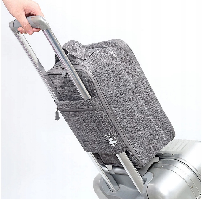 Сзади сумки имеется ручка с карманом на молнии, что позволяет положить сумку на ручки чемодана.