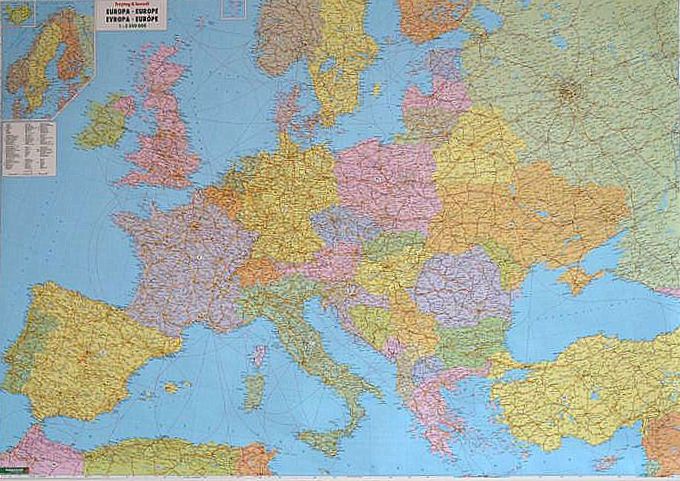 Дорожня та адміністративна настінна карта Європи