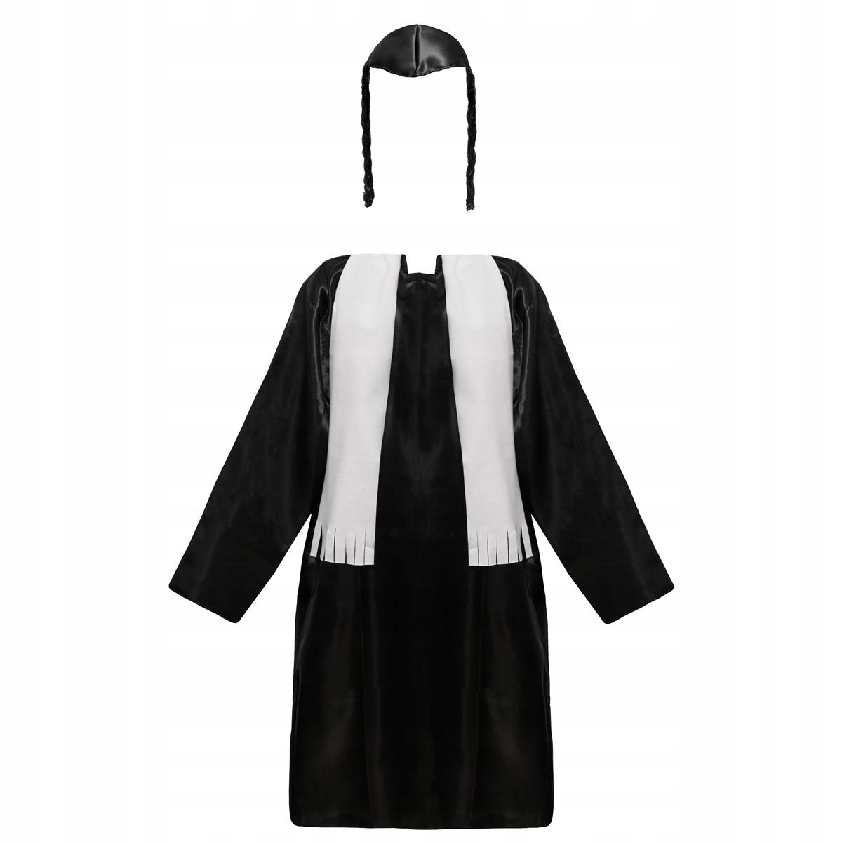 Идеальный костюм для карнавала, Хэллоуина или тематической вечеринки – представляем уникальный костюм для взрослых «Рабби». В комплект входит элегантное пальто, стильный шарф и характерная тюбетейка с пейсами, придающими всему аутентичности. Костюм выполнен из качественного стрейча и бархата, что обеспечивает комфорт при ношении и идеальную посадку.