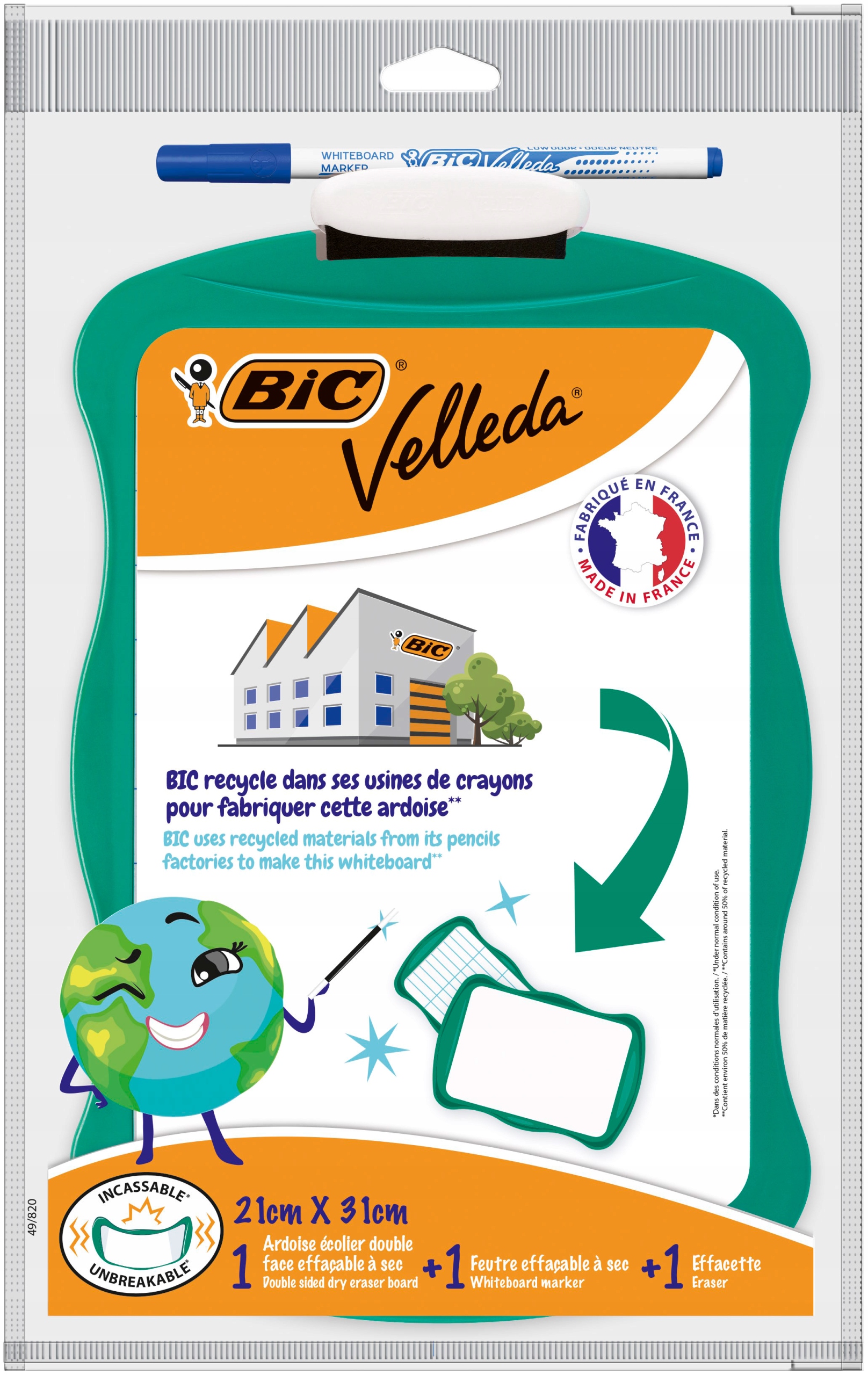 Благодаря этим доскам сухого стирания, которые очень легко носить с собой и стирать (даже через несколько дней), учиться будет весело. Знаете ли вы, что BIC Velleda является одним из брендов BIC уже более 35 лет? BIC приобрела этот бренд, чтобы добавить полную линейку ручек и поверхностей для белых досок, таких как белые доски и пленка для белых досок.