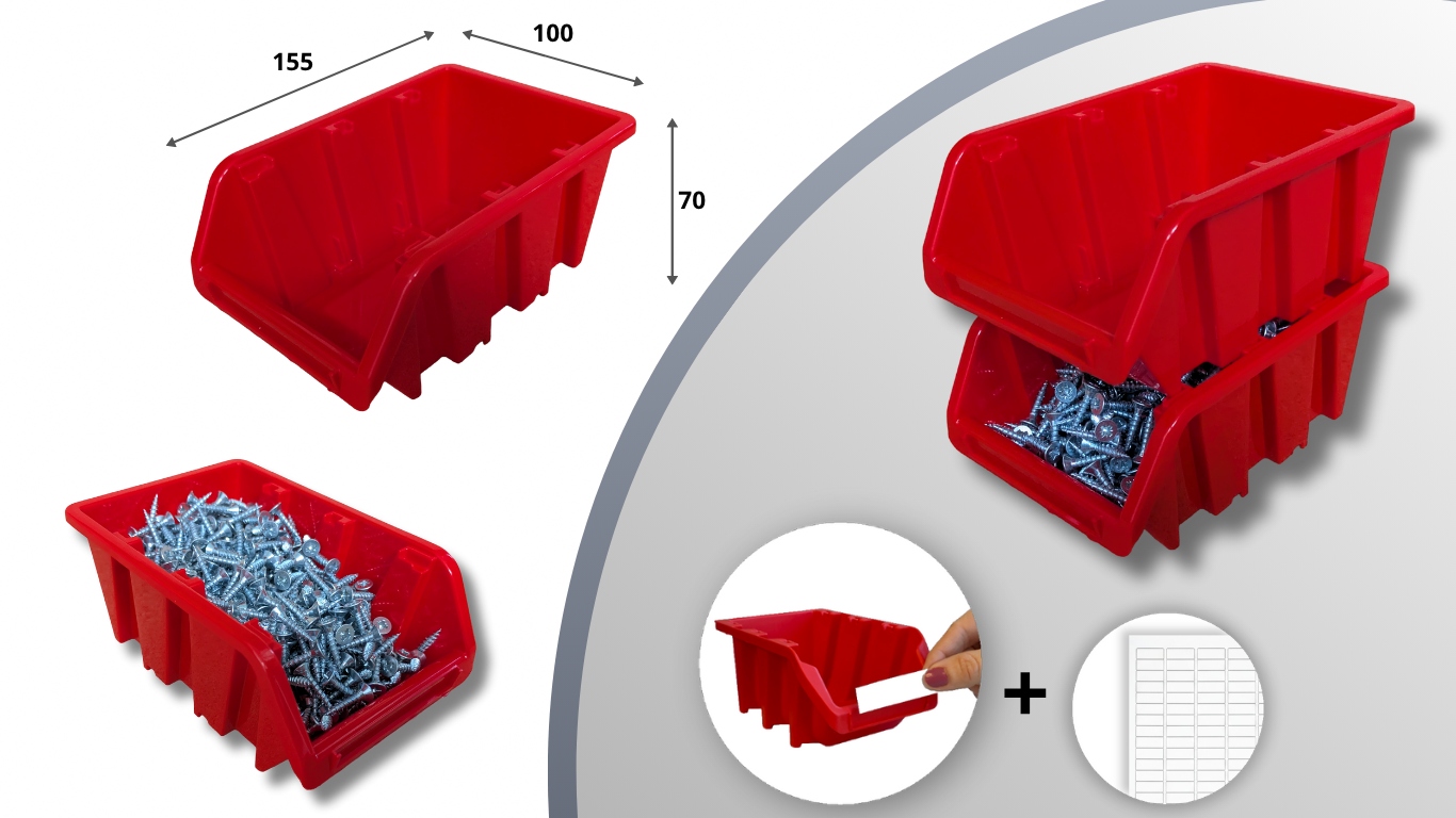 На полках есть место для сверл (с описанием диаметра сверла), место для бит, головок, отверток, плоскогубцев, гаечных ключей и различного другого ручного инструмента. На полке также предусмотрено ровное место для любых мелочей.