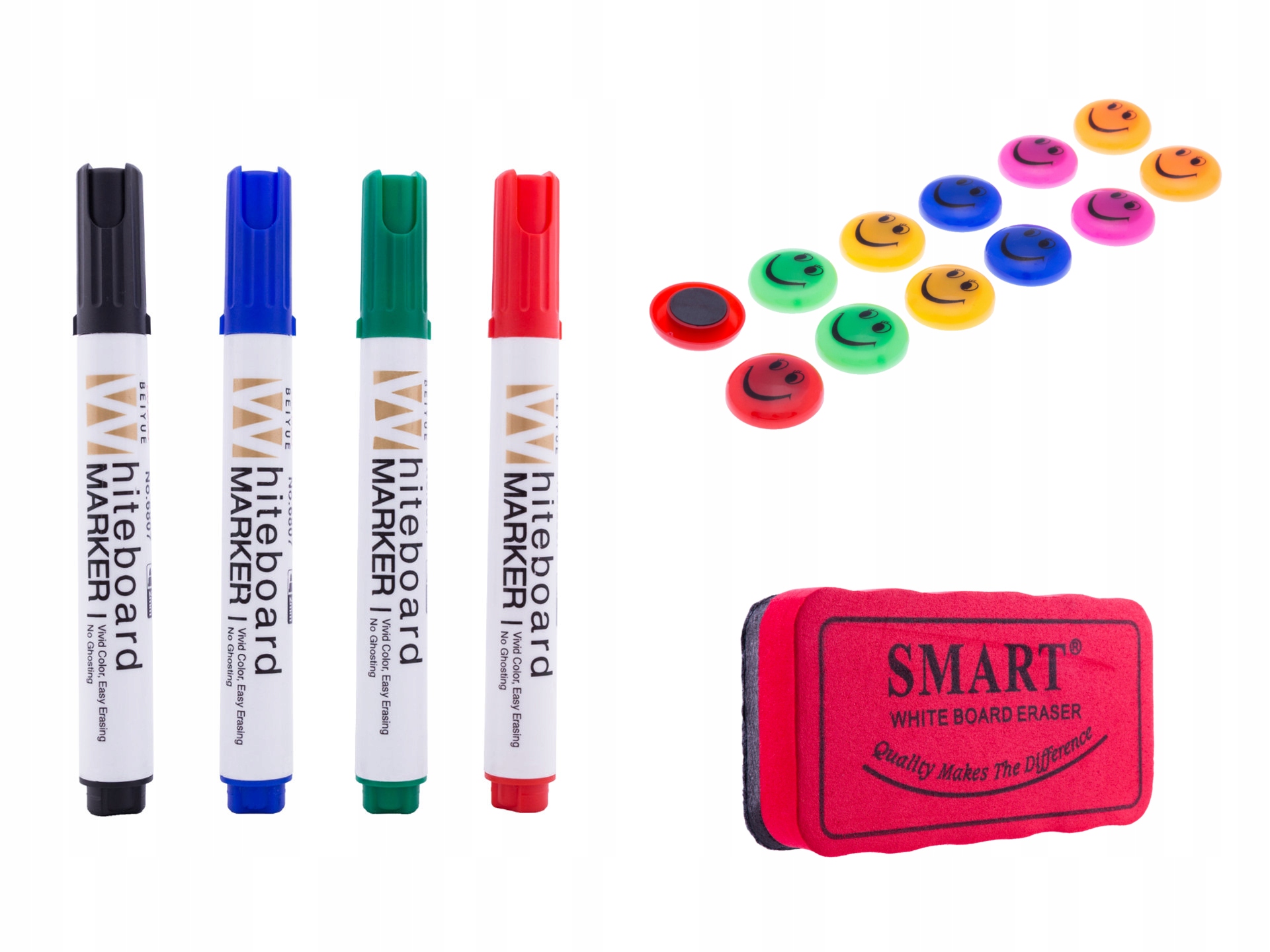В комплект также входят 4 маркера, 12 магнитов и губка.