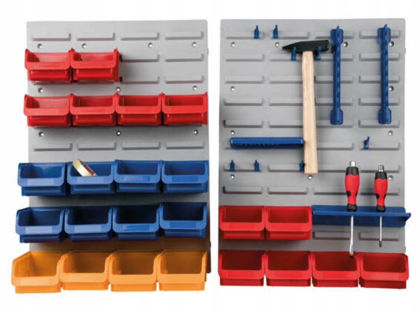 - 2 устойчивых настенных элемента с различными контейнерами и держателями для инструментов – возможность индивидуального расположения