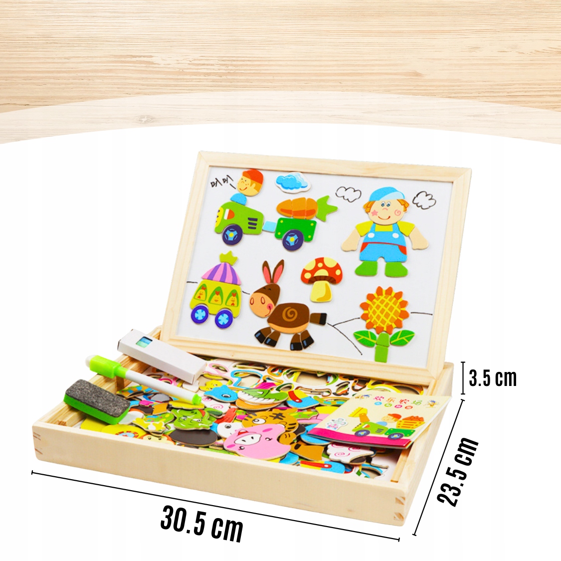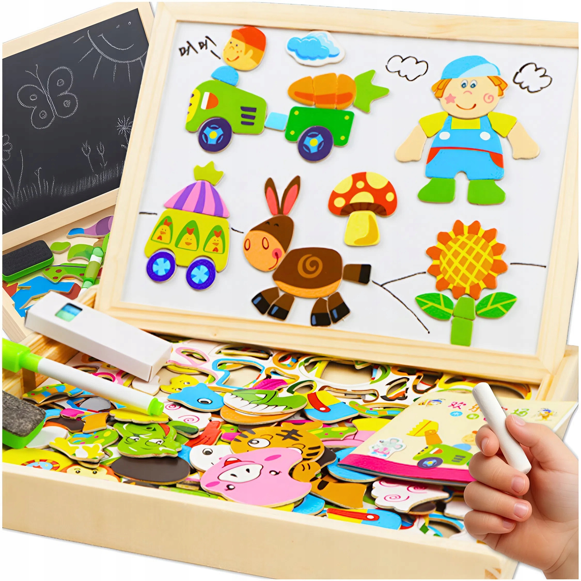 🎨 ДЕРЕВЯННАЯ МАГНИТНАЯ ДОСКА 120 ЭЛЕМЕНТОВ – ДВУХСТОРОННЯЯ С ПАЗЗЛАМИ