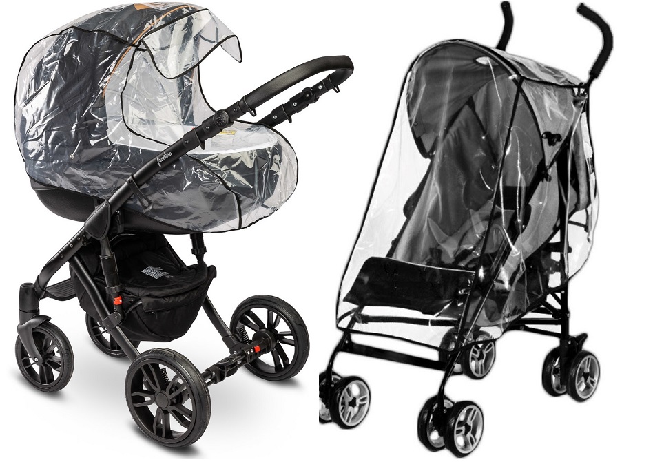- погодоустойчив, защищает ребенка и коляску