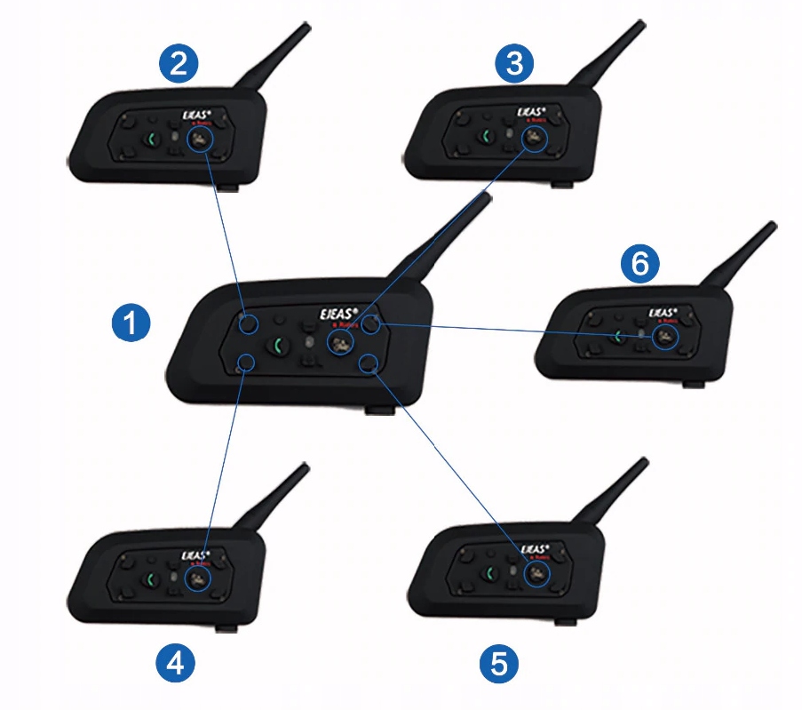 ejeas v6 pro -последняя модель мотоцикла для шлемов для шлемов. MP3 музыка, проводя звонки по телефону. Intercom облегчает путешествие и повышает безопасность. Благодаря полной дуплексной функции вы можете слушать и поговорить с одним из шести парных людей одновременно. Модель V6 также имеет функции автоматического приема соединений, и объем управления громкостью. Сильные антенны с усилителем обеспечивают большой диапазон. Напротив, качество звука улучшит расширенное снижение высокого уровня шума со скоростью до 140 км/ч. Это самая большая батарея по сравнению с более старыми моделями EJEAS - V6 и E6. Это обеспечивает до 12 часов постоянной работы или до 400 часов в режиме ожидания