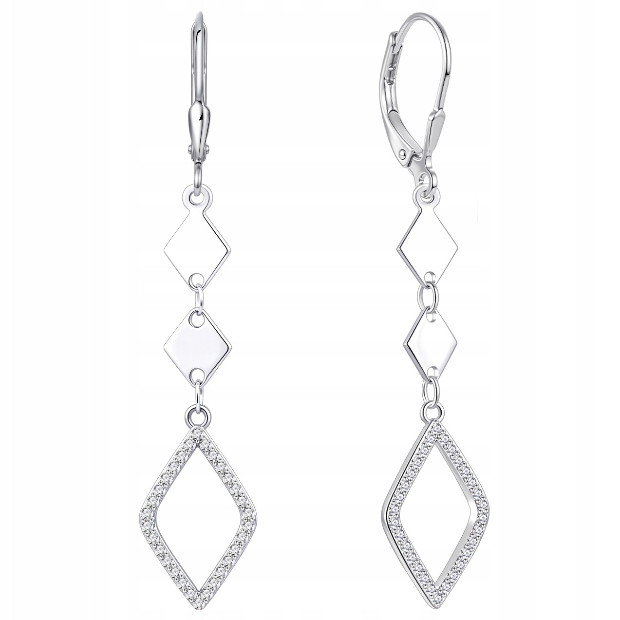 ДЛИННЫЕ АНГЛИЙСКИЕ СЕРЕБРЯНЫЕ СЕРЬГИ С ЦИРКОНИЙМИ РОМБАМИ, СЕРЕБРО 925 ПРОБЫ