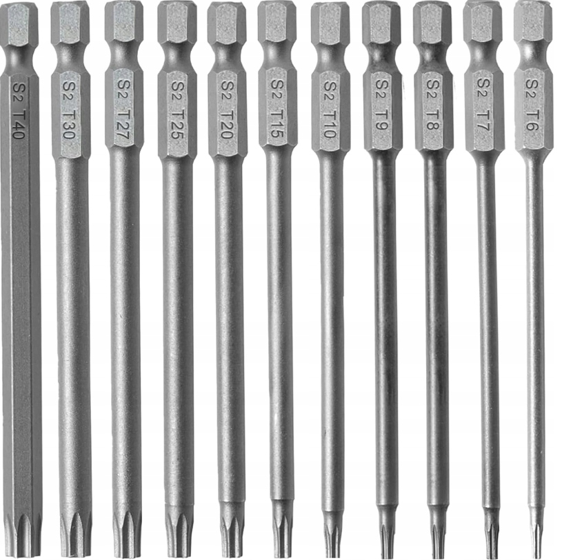 Характеристики: Отвертка Torx, Длина 100 мм (3,93 дюйма). В упаковке находится одиннадцать отверток. У каждой дрели своя модель. Это модели: T6, T7, T8, T9, T10, T15, T20, T25, T27, T30, T40.