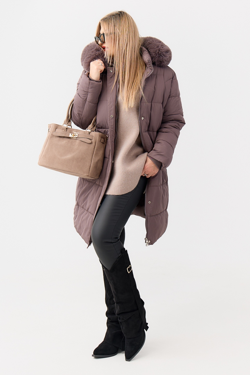 ✅ Вместительный отстегивающийся капюшон с широкой меховой опушкой