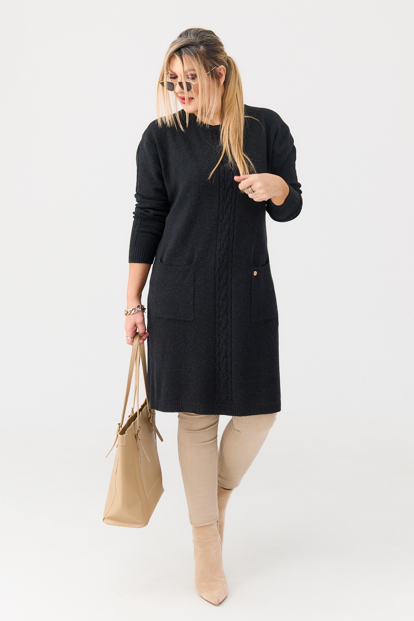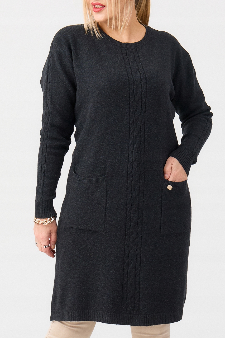 СВИТЕР-ТУНИКА ЖЕНСКАЯ ДЛИННАЯ С КАРМАНАМИ БОЛЬШИХ РАЗМЕРОВ ТЕПЛАЯ ЭЛЕГАНТНАЯ