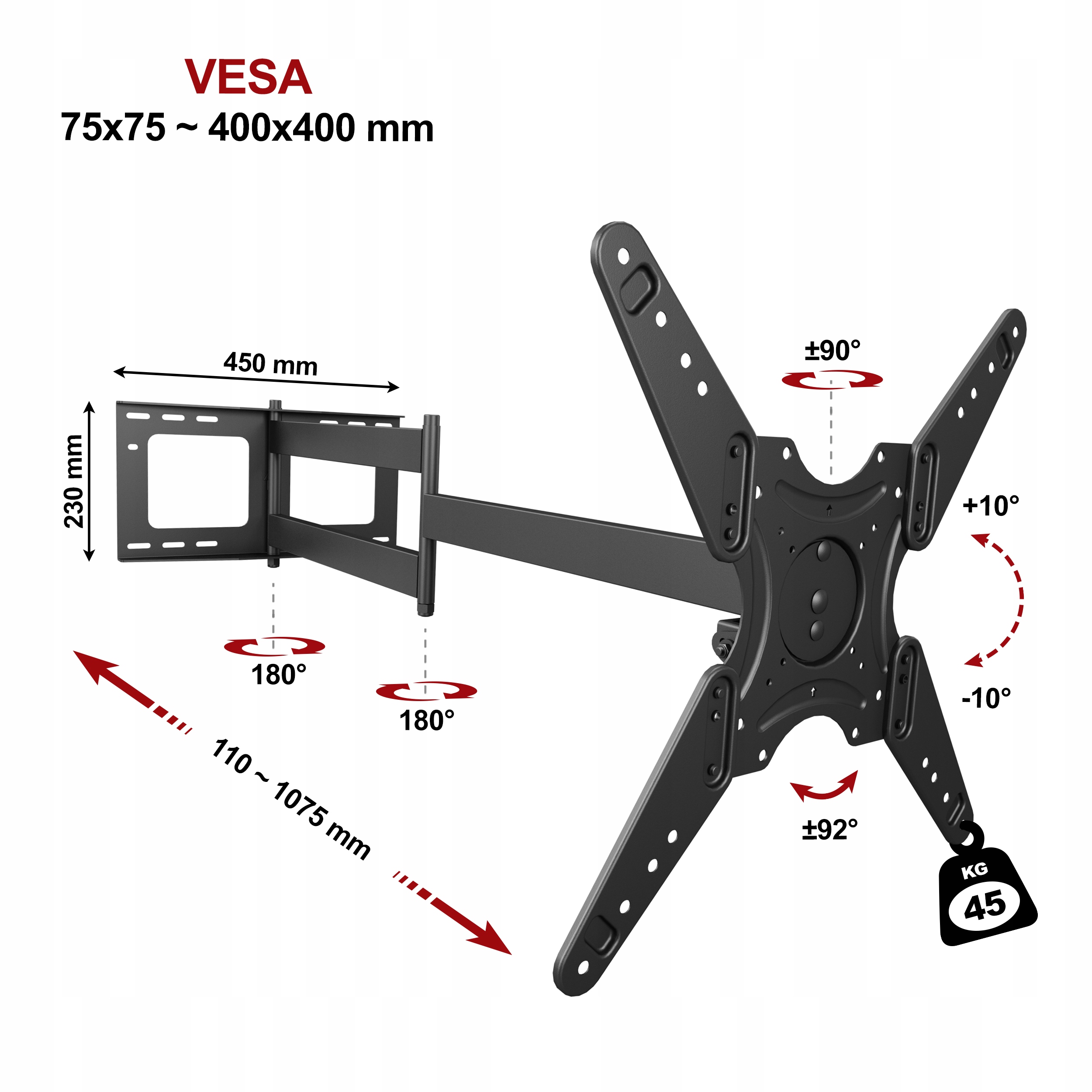 - Регулируемое расстояние от стены в диапазоне: 110 ~ 1075 мм b>