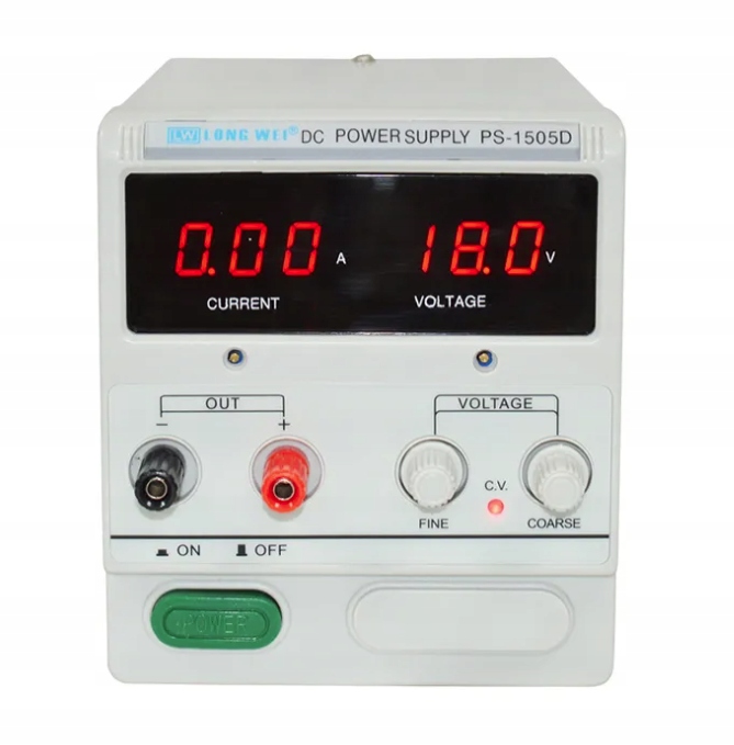 PS-1505D Источник питания Logwei имеет стандартные выходные зажимы напряжения: это 4 мм банановая вилка. Банановая штекер может быть подключена к выходным гнездам или привинчивается изолированный электрический кабель. Красный-это выход (+) и черная (-) масса. Лабораторный источник питания очень прост в использовании. Это незаменимый источник для подачи устройств с постоянным напряжением DC. Это облегчает процесс образования, тестов и всех семинаров.