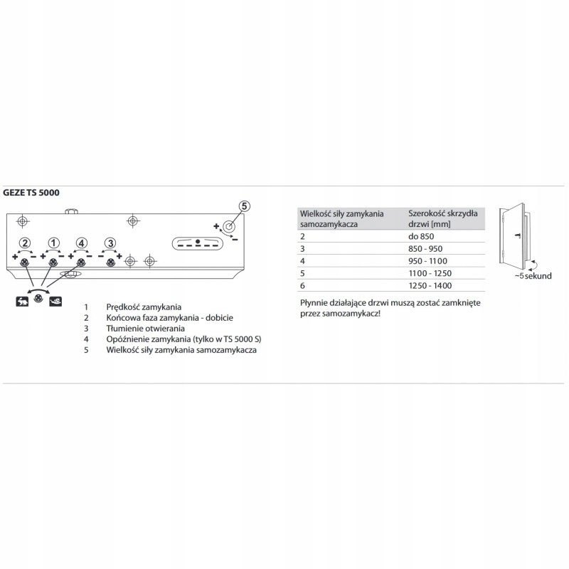 - Доводчик TS 5000 с направляющей для дверей с шириной створки до 1400 мм.