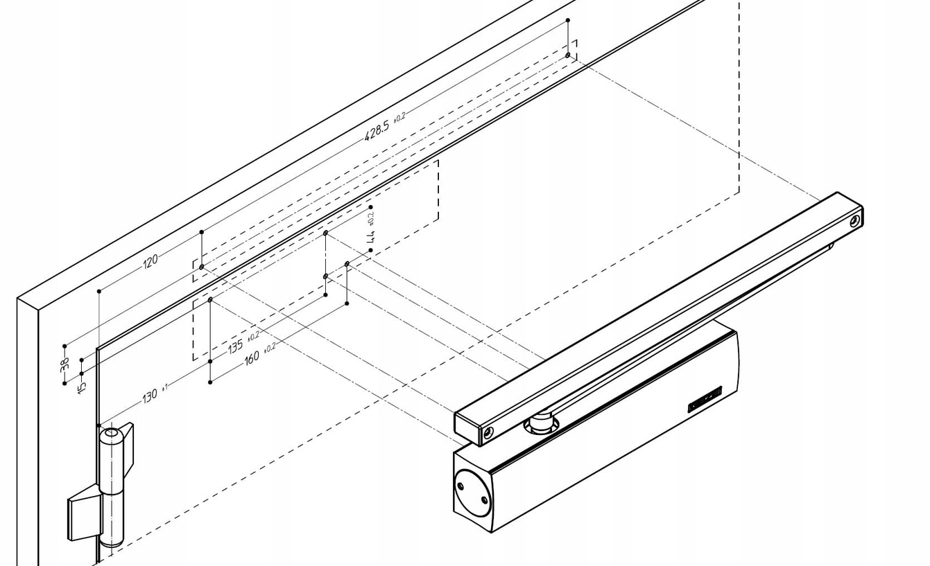 Накладной доводчик для одностворчатых дверей, внешний вид которого напоминает эстетику линейки доводчиков GEZE. Разрешено для использования на огне- и дымонепроницаемых дверях.