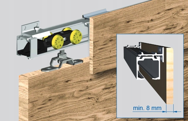 Доводчик также можно использовать с системами других производителей, направляющие которых соответствуют требованиям к размерам, указанным ниже