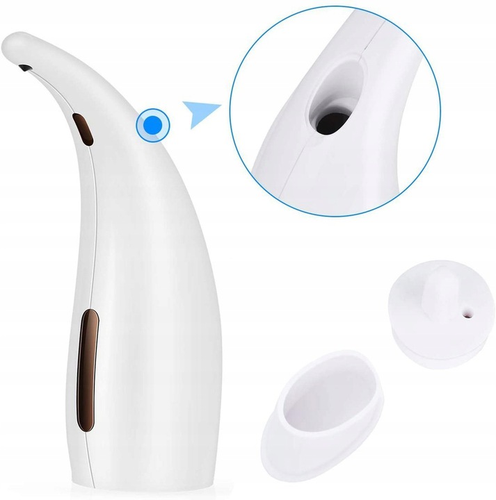 Автоматический диспенсер прост и минималистичен. Он оснащен инфракрасным датчиком, который определяет близость руки и запускает выпуск соответствующей дозы жидкости.