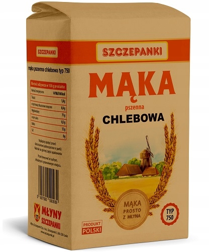 Мука пшеничная хлебная Щепанская тип 750 – это мука, полученная путем помола зерен польской пшеницы. Выпечка из хлебопекарной муки приобретает соответствующий объем, вкус и запах настоящего домашнего хлеба.