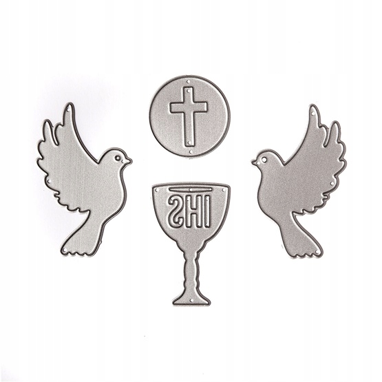 Coplet of Dies, необходимые для проектов по предмету первого святого причастия. Набор включает в себя два капусты, чашку с надписью IHS и хозяин с крестом