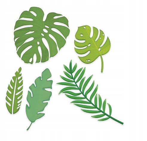 Набор штампов, содержащих овощные мотивы со стилизованными экзотическими листьями, включая монстры или пальмы для создания уникальной бумаги, картона и пены.