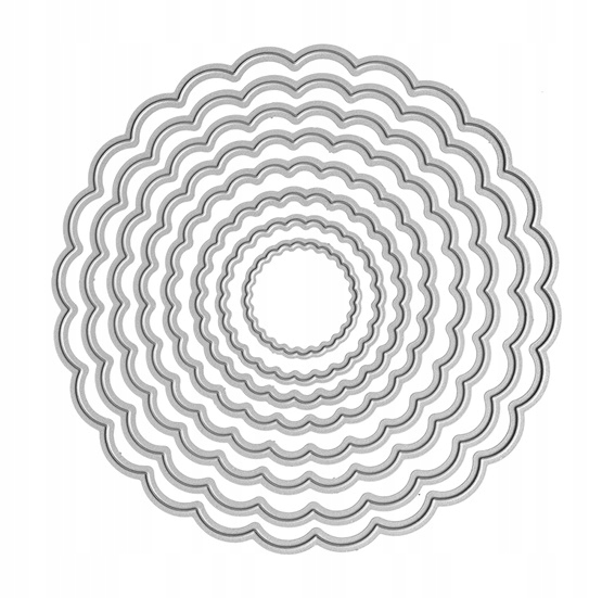 Набор плашек с узором в виде круга с рюшами. Он состоит из целых 8 элементов, с одинаковым узором, но разного размера. Этот штамп позволит вам сделать поздравительные открытки, открытки, подарочные бирки, гирлянды и другие украшения, например. для летней вечеринки в саду. Плашки вырезают бумагу до 300г, картон и пенопласт. Упакован в эстетичный и практичный пластиковый конверт для хранения.