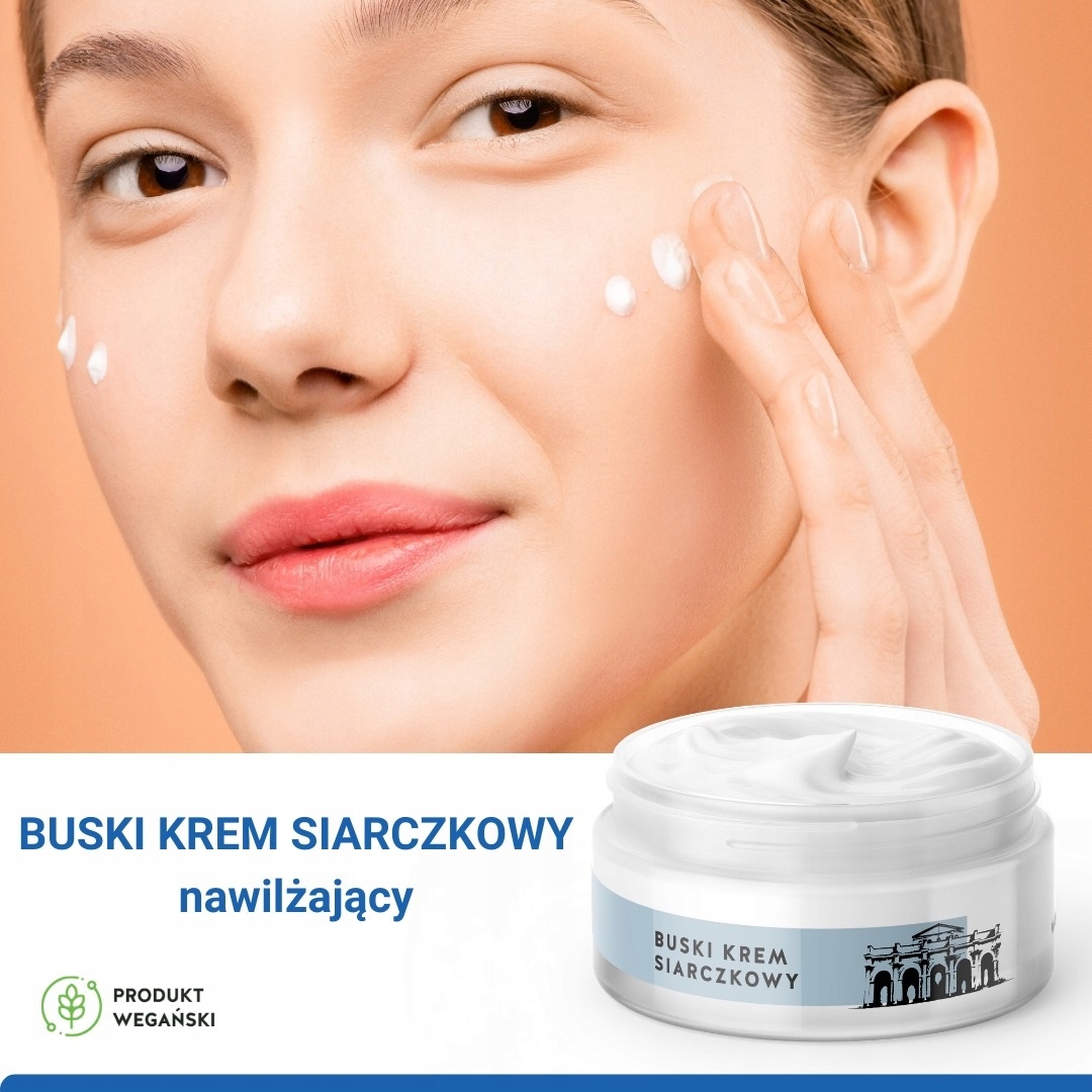 "Buski Sulfur Cream™ с витамином А+Е (Доктор Дуда) обеспечивает глубокое и длительное увлажнение кожи и дарит ощущение полного комфорта. Он защищает кожу от потери естественной влаги, а правильное увлажнение обеспечивает красивую и здоровую кожу. Сернистая вода из источника «Зузанна» Лас-Винарски недалеко от Буско-Здруя вместе с минералами и другими растительными ингредиентами (алоэ, масло жожоба, масло вечерней примулы, масло розы и лаванды), а также витаминами А + Е и глицерином, содержащимися в крема, представляют собой очень активно увлажняющий комплекс, сохраняющий естественную влагу в коже, укрепляющий и питающий цвет лица.