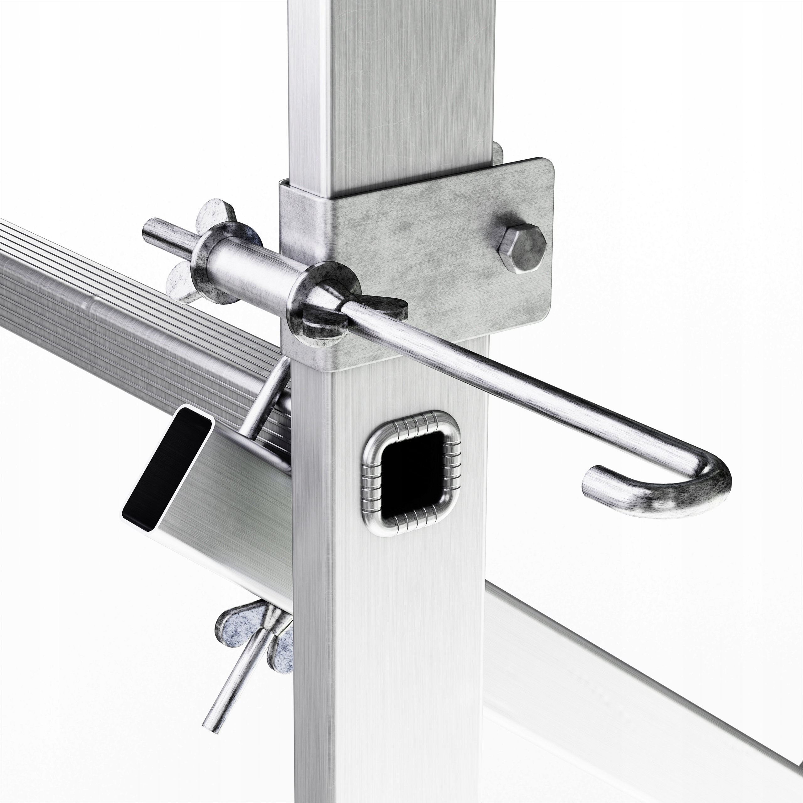 • леса оснащены 4 кронштейнами, привинченными хомутами и барашковыми гайками