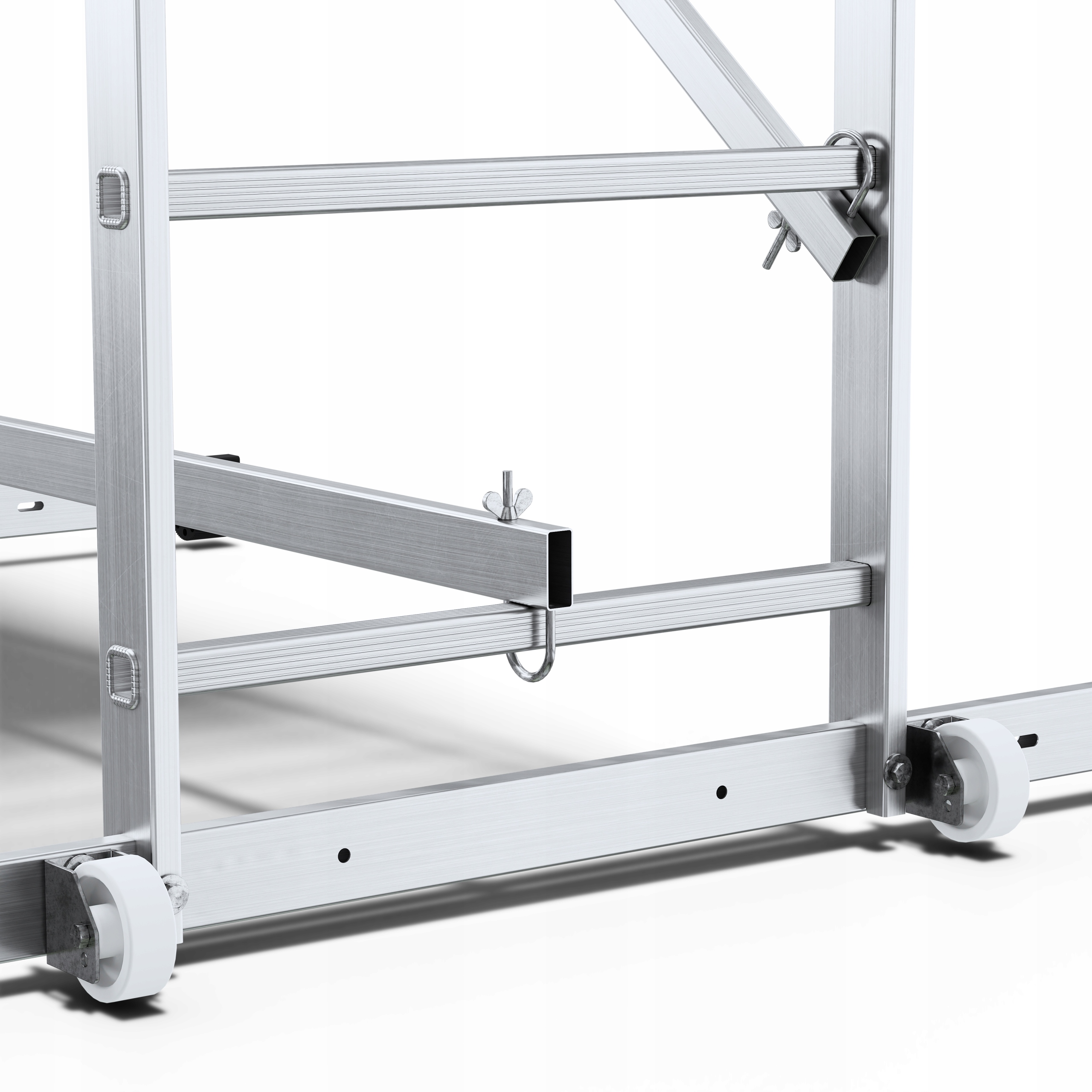 • Смонтированные пластиковые колеса позволяют легко транспортировать леса.