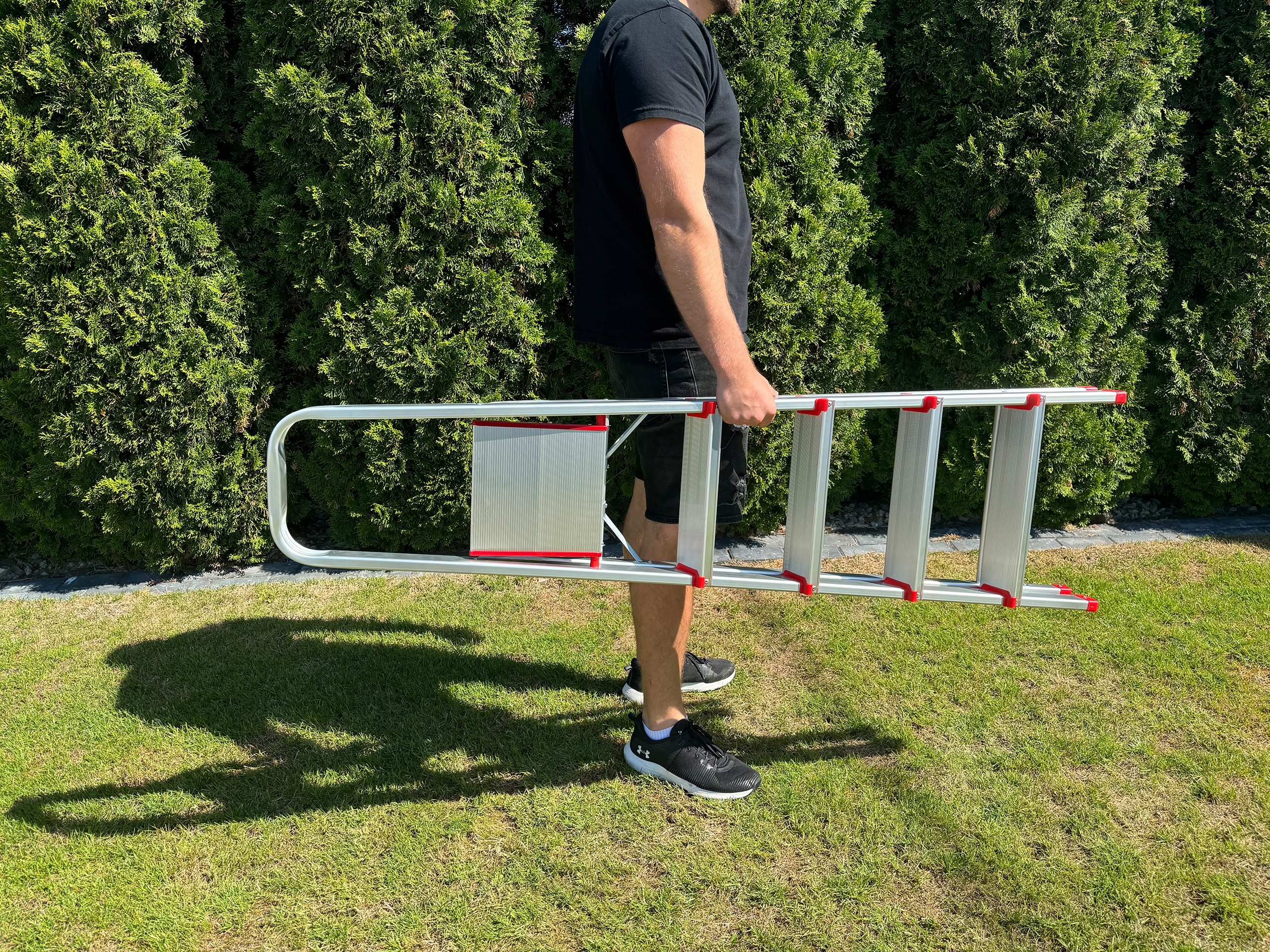 ✅Инструмент изготовлен из прочного и легкого алюминия, поэтому у вас не возникнет проблем взять его с собой в путешествие. Благодаря своим компактным размерам наша алюминиевая лестница легко поместится в багажнике автомобиля, гараже или отсеке для инструментов.