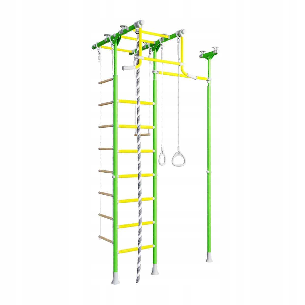 Богатый набор аксессуаров, шест со штангой, веревка, качели и множество других аксессуаров, благодаря которым каждый день может быть полон радости и движения. Расширительная система крепления означает отсутствие сверления и максимальное удобство – идеальное решение для детской комнаты!