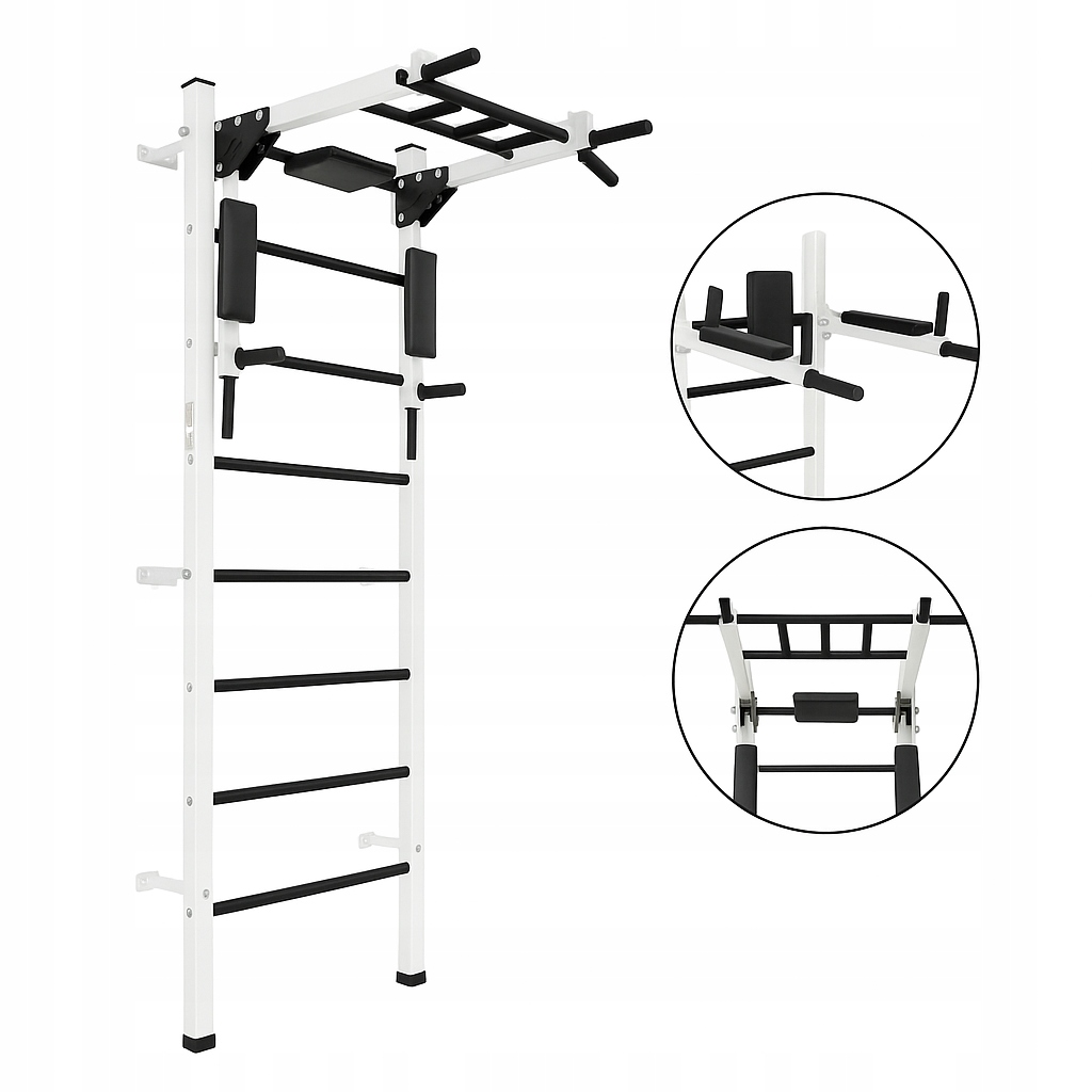 Лестница для упражнений Profi крепится к стене с помощью стальных шурупов, входящих в комплект. Сама лестница и все аксессуары, входящие в комплект, изготовлены из одинакового материала. Теперь ваша очередь — наращивайте мускулы, как сталь!