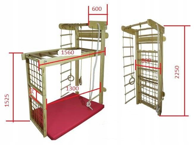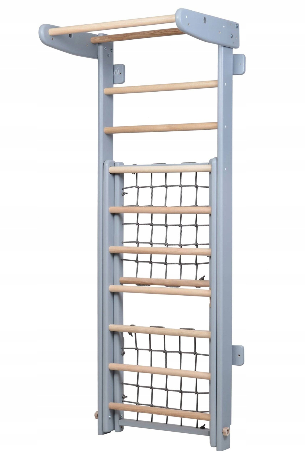 Гимнастическая лестница WINNER PLUS 225 см | с сеткой, веревкой и кольцами | дерево