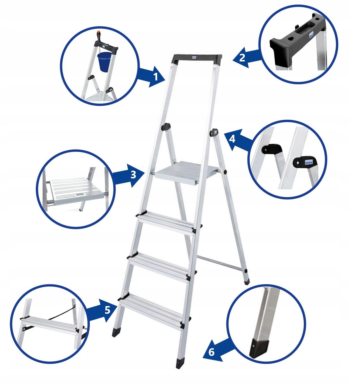 6. Противоскользящие ножкипредохраняют лестницу от автоматического перемещения во время занятий