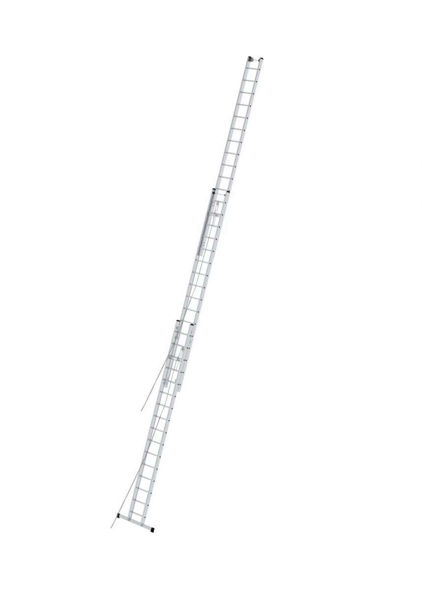 Трехэлементная алюминиевая лестница, выдвижная для использования на большой высоте, с настенными роликами и двумя веревками для облегчения изменения высоты. б> Описание: