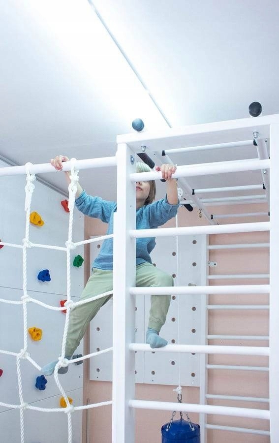 Гимнастическая лестница в детской комнате способствует использованию лишней энергии, развитию координации движений, мышц ног и рук и силы хвата ребенка, а также сотрудничеству и совместному проведению времени братьев и сестер, детей с родителями. Все это обязательно приведет к лучшим результатам ребенка не только в спортивных дисциплинах, но и в учебе.