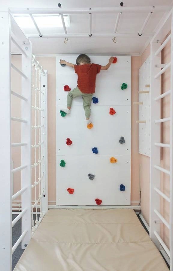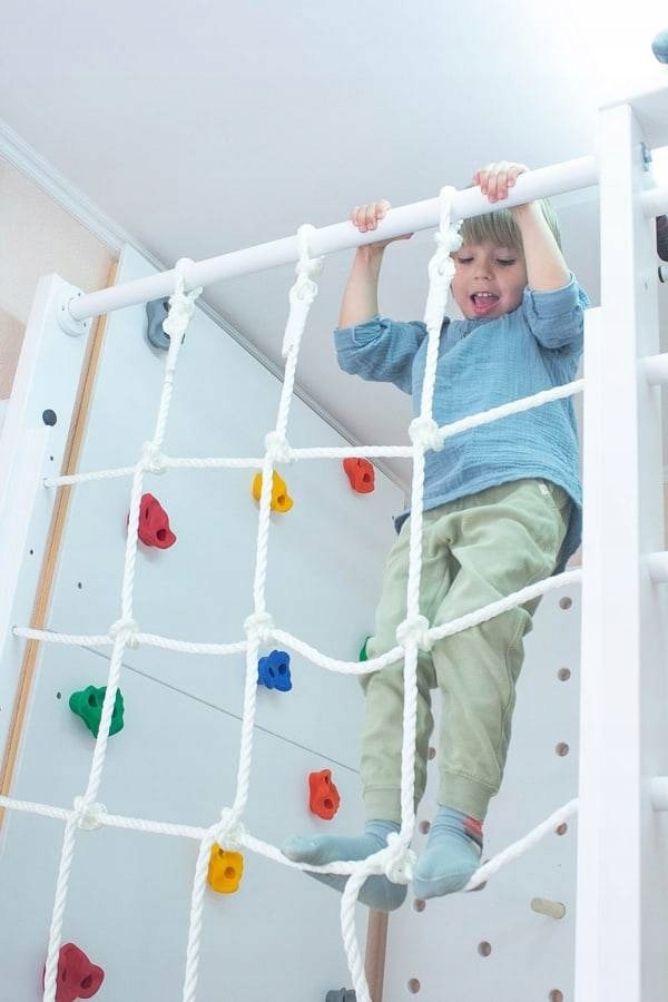Гимнастическая лестница в детской комнате способствует использованию лишней энергии, развитию координации движений, мышц ног и рук и силы хвата ребенка, а также сотрудничеству и совместному проведению времени братьев и сестер, детей с родителями. Все это обязательно приведет к лучшим результатам ребенка не только в спортивных дисциплинах, но и в учебе.