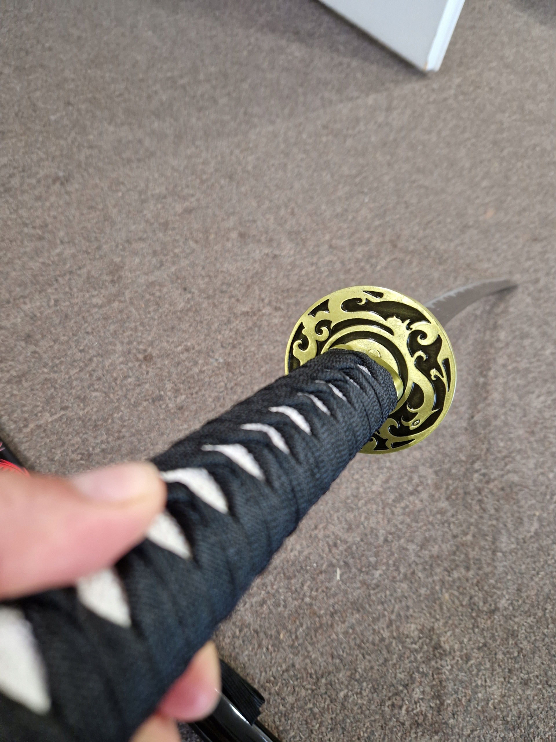 Рукоять: деревянная, хлопчатобумажная тесьма, под ней имитация кожи ската