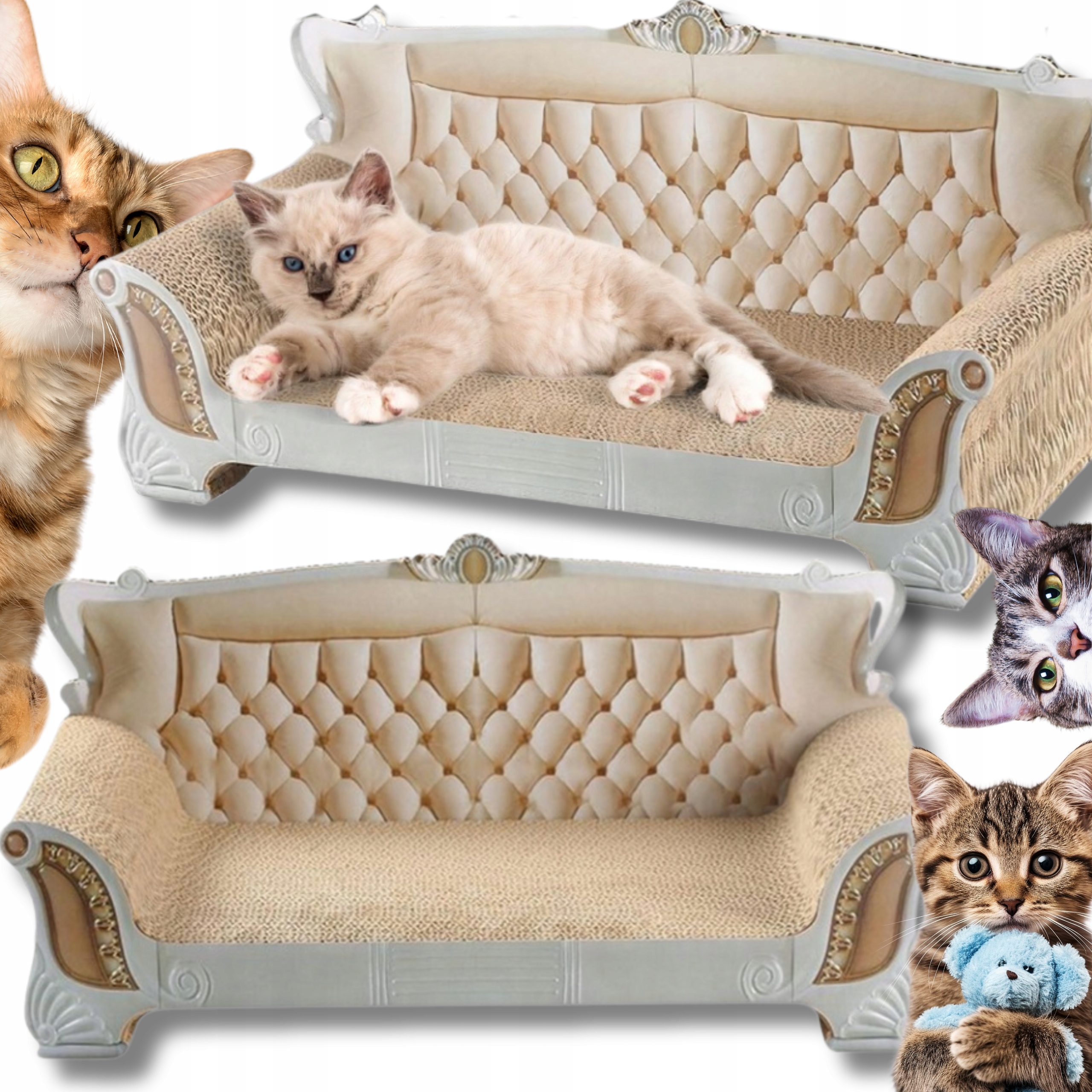 ✅ Удобный логово : Ваша кошка заслуживает королевской кровати, а логово в форме эксклюзивного дивана - идеальное место для отдыха и сна. Благодаря мягкой и удобной поверхности гофрированной доски, она предоставляет кошке удобное место для расслабления.