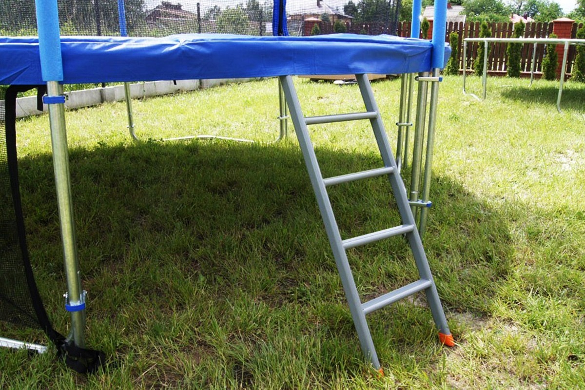 Лестница универсальна, т.е. подходит для батутов размером 12-16 футов. Лестница подходит для батутов всех производителей, у которых высота от земли до кольца, на котором подвешен коврик для прыжков, составляет 80 - 90 см.