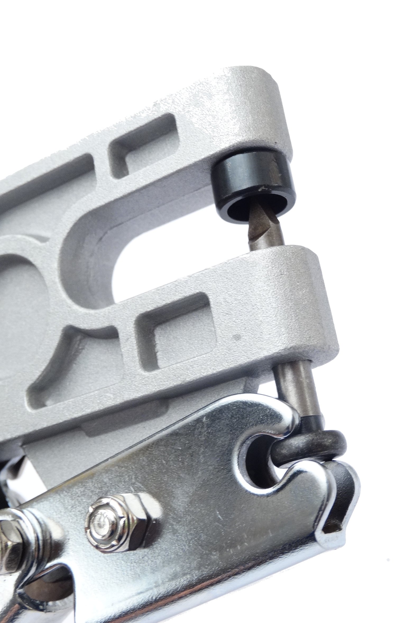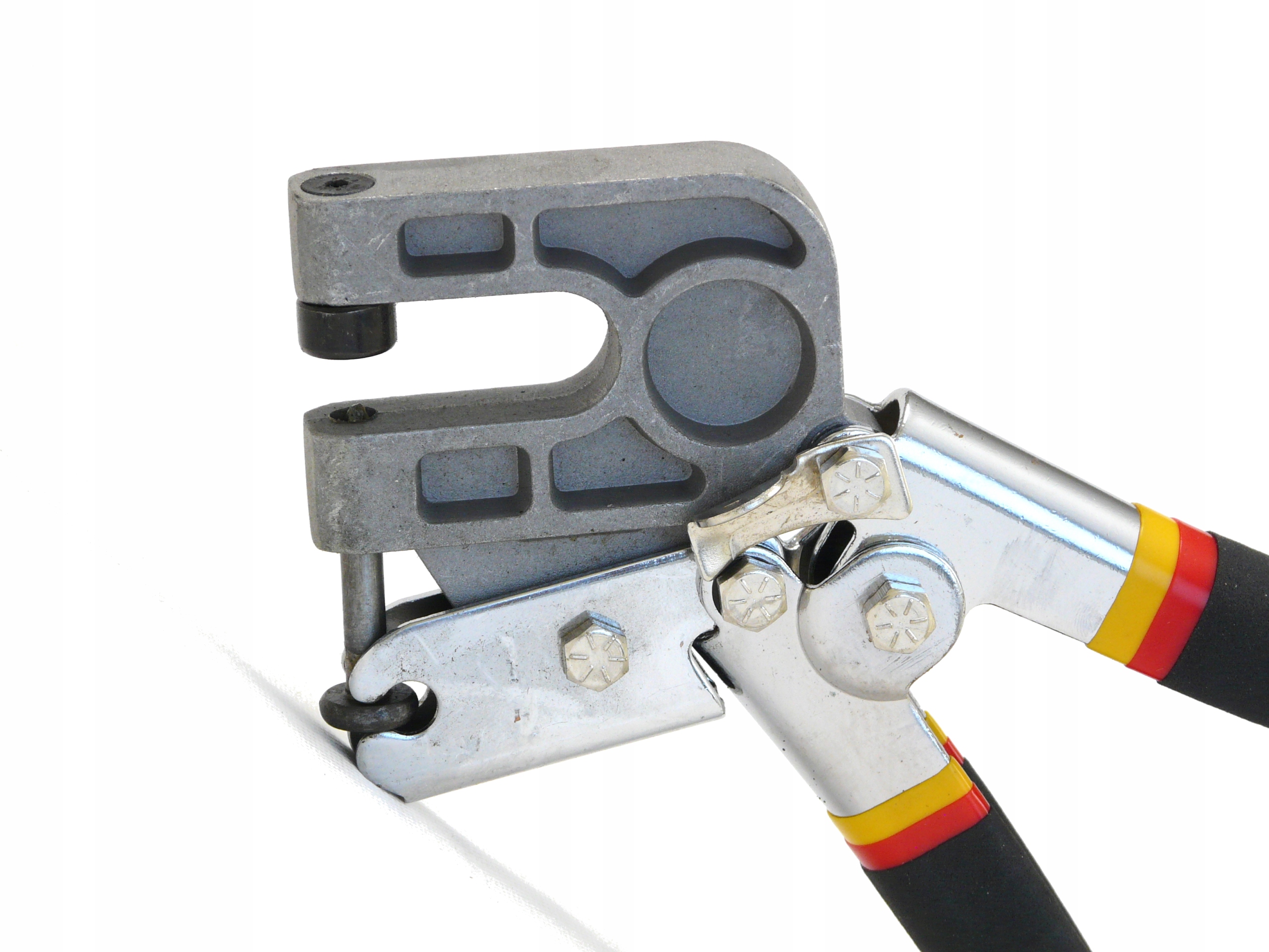 Поместите соединяемые элементы в головку плоскогубцев и плотно прижмите ручки. Штифт протыкает листы насквозь, выталкивая один из них на другую сторону отверстия, таким образом, прочно соединяя их.